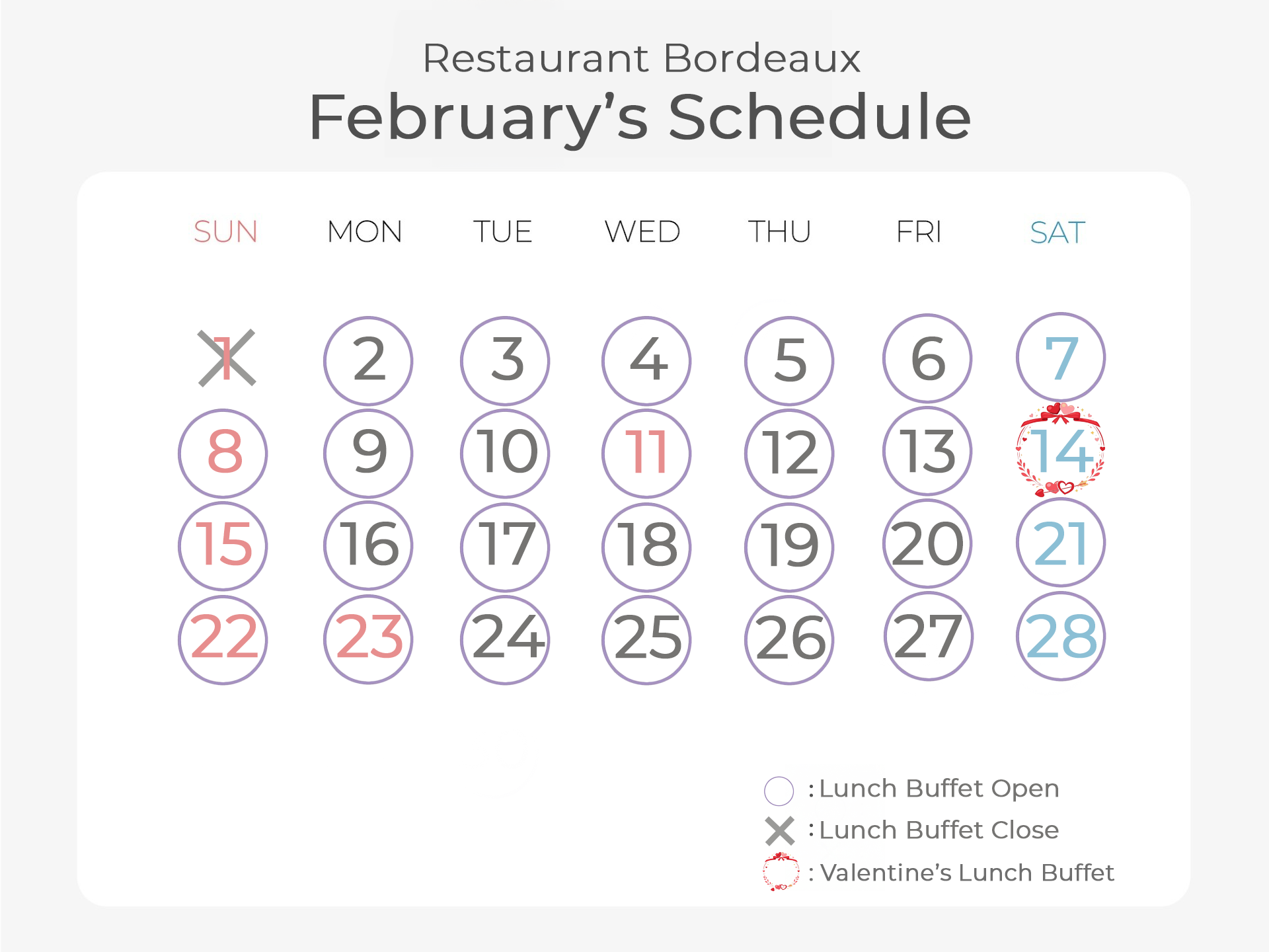 *Adult 3,000yen for Valentine’s Lunch Buffet