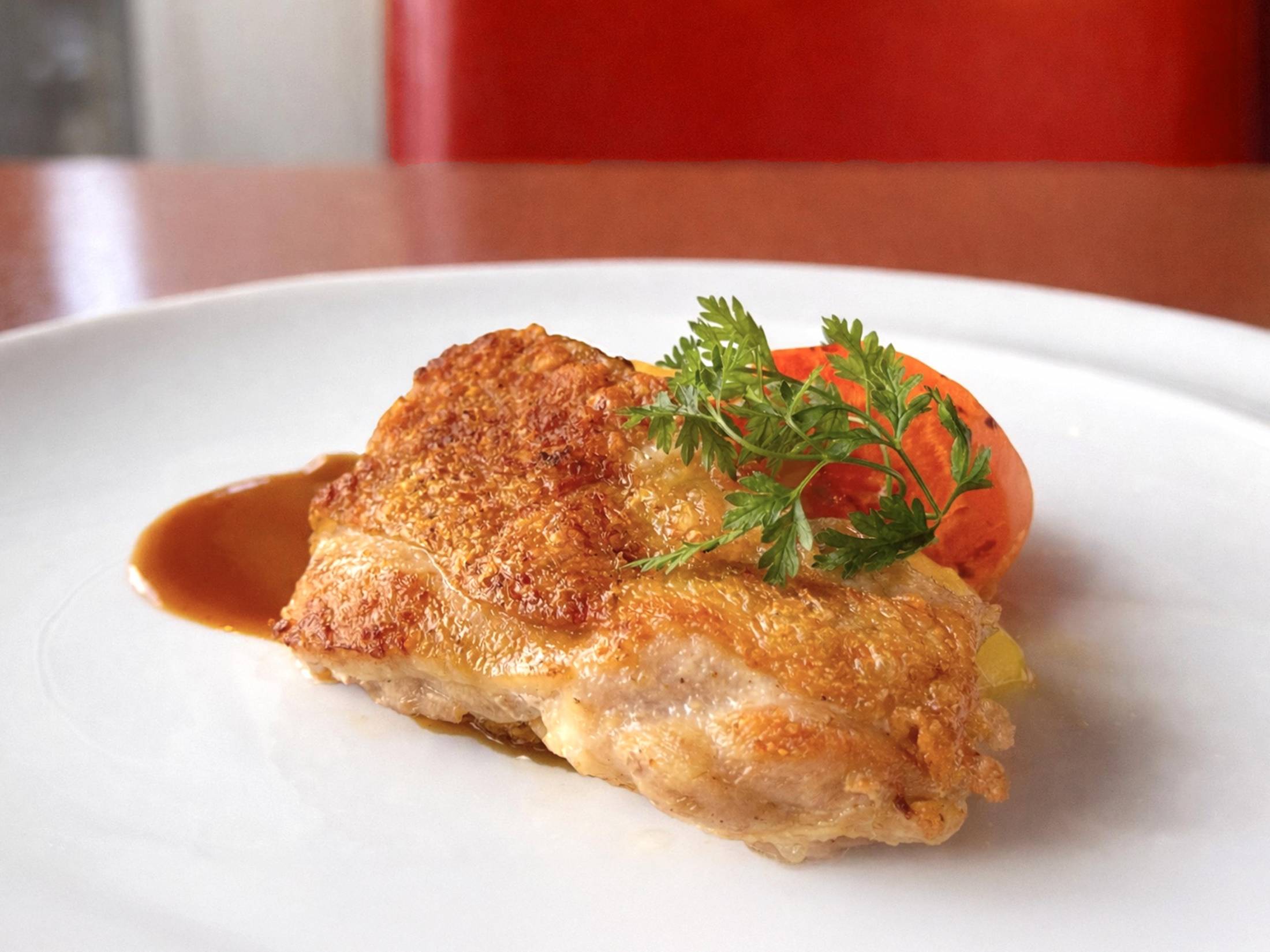 ① Pan-Fried Chicken Thigh with Chicken Jus and Carrot Sauce (Monthly Special)