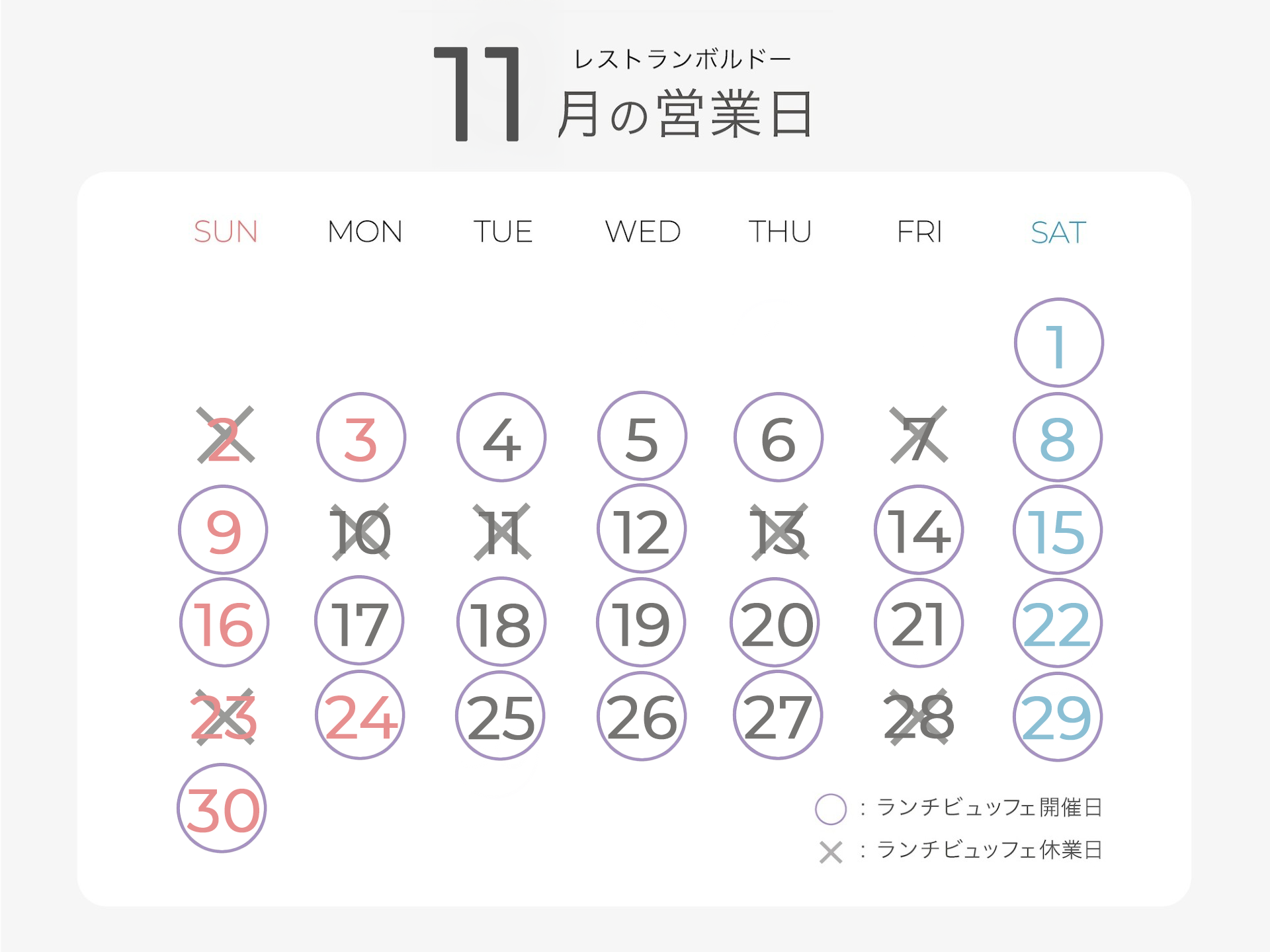 定休日:11/2, 7, 10, 11, 13, 23, 28
