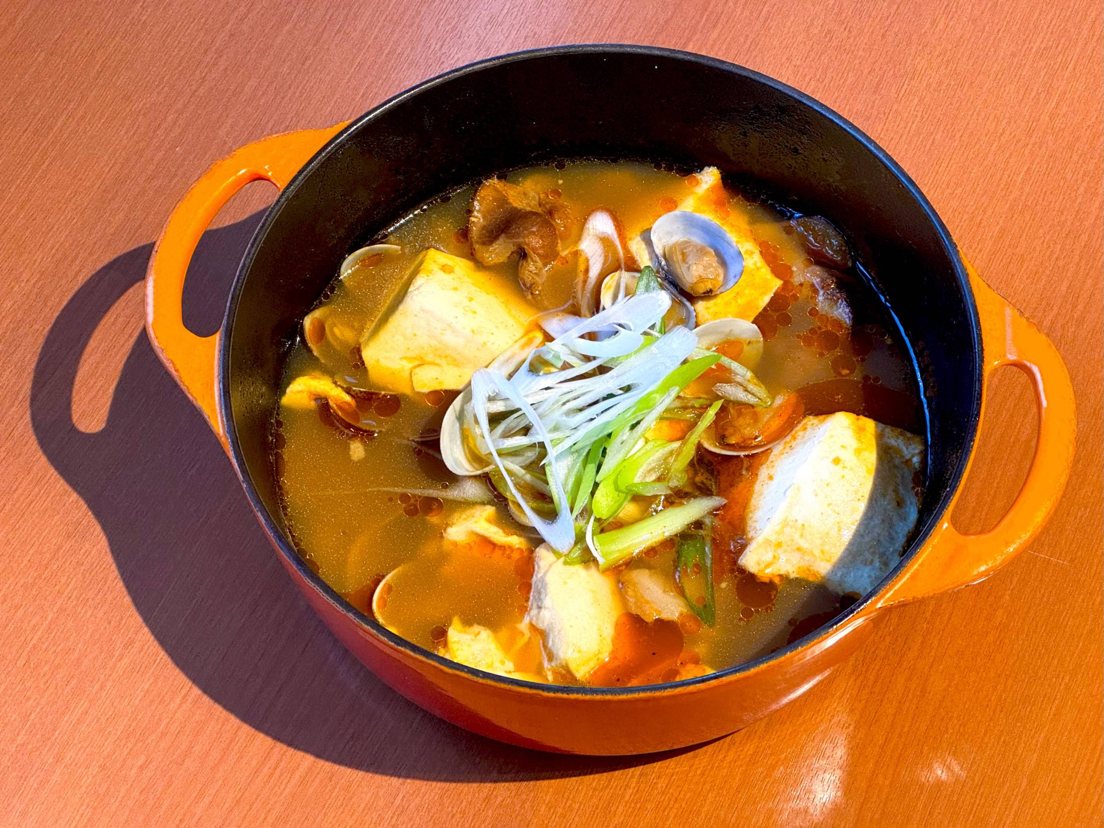 スンドゥブチゲは、韓国で広く親しまれている定番の家庭料理。なめらかで柔らかなスンドゥブ(純豆腐)を主役に、唐辛子の旨みとだしのコクが溶け合った、体の芯から温まる一品です。