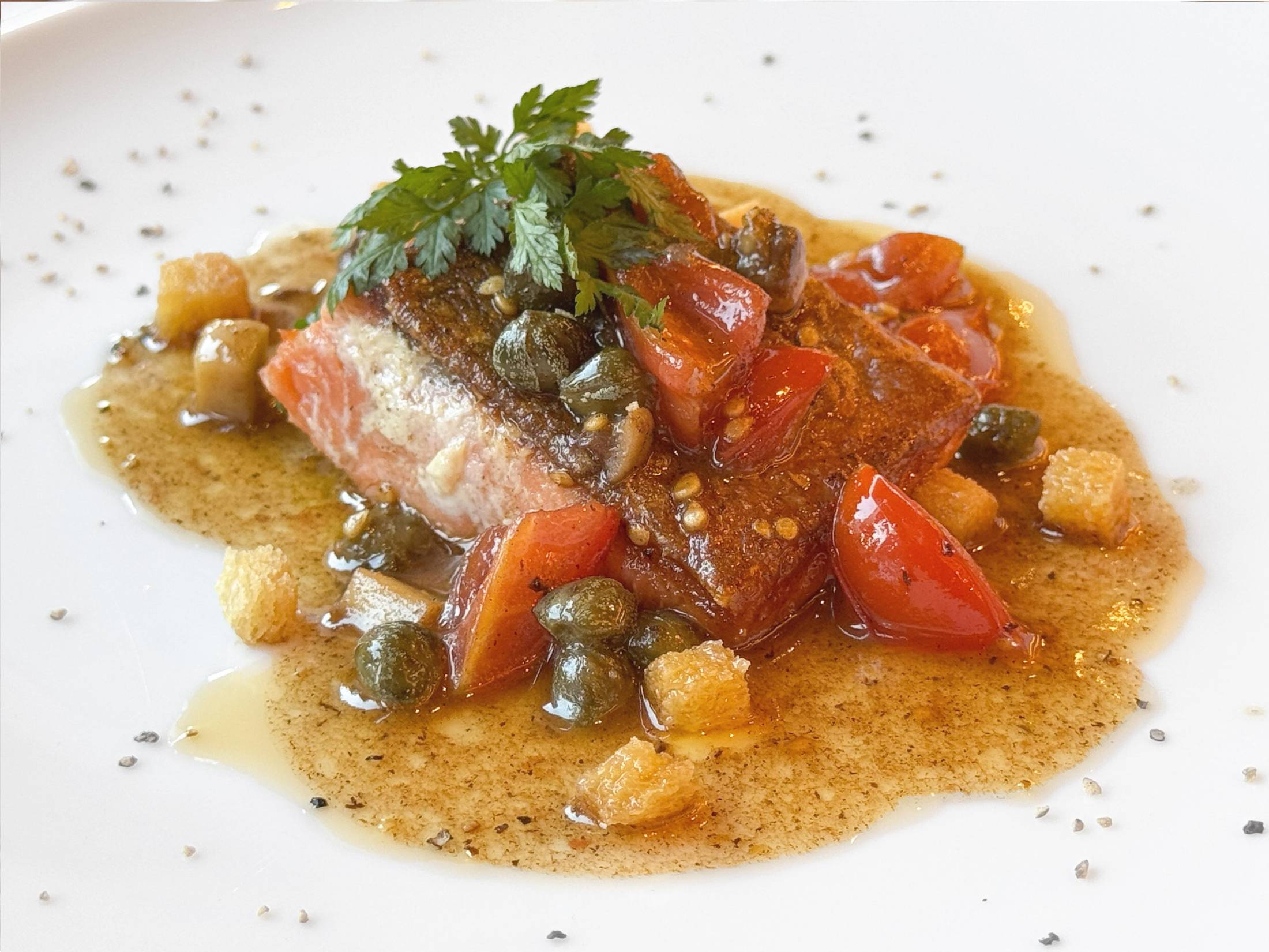 ②サーモンのポワレ グルノーブル風ソース(月替わり)